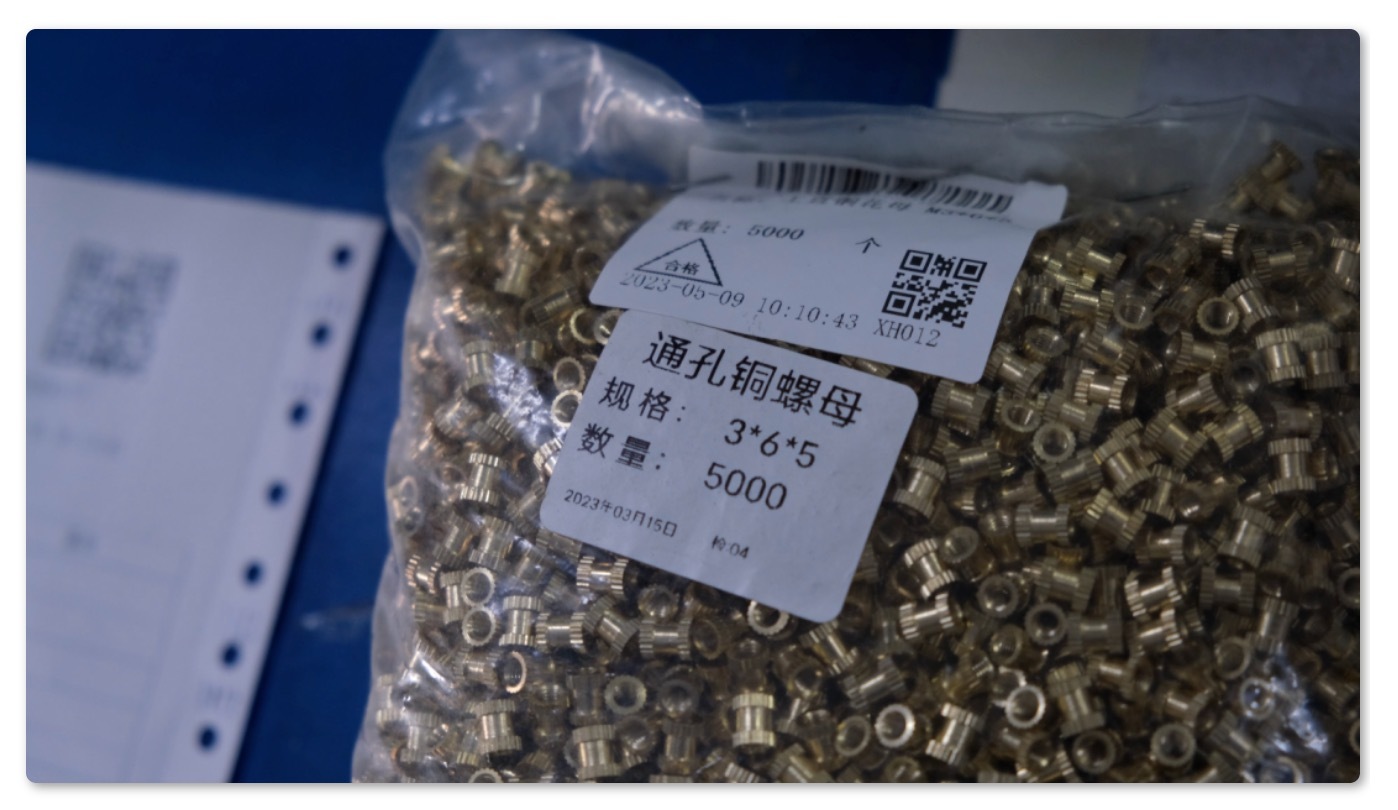 首先在收货入库作业上,当接收到一批物料后,收货组会按照物料固定规格包装进行拆分,然后按照每包数量打印箱条码,例如物料来料每包分别为1000(个)、2000(个)、5000(个)等,分包支持任意数量,每一包都有独立的可追溯的箱码、系统记录入库时间、包装质检人。