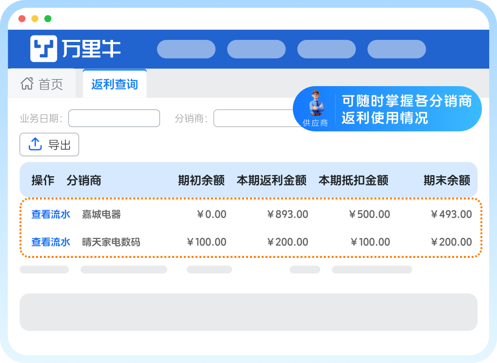 供应商:实时查询分销商返利情况
